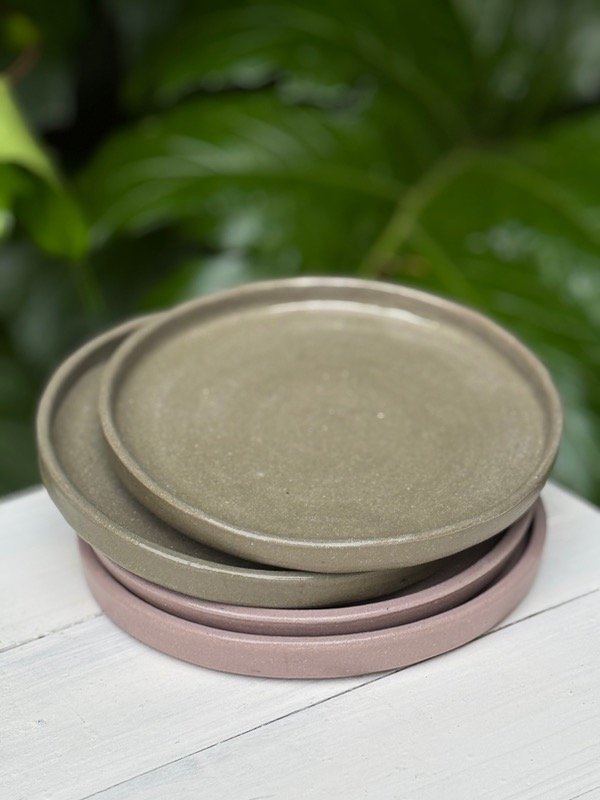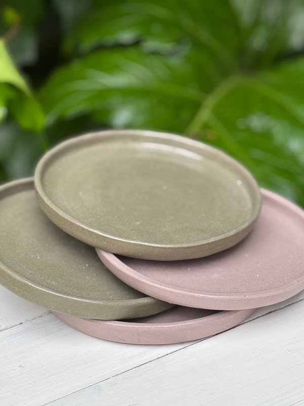 Plato playo de gres coloreado en tonos naturales: Crudo, Tostado, Verde o Lila. Un toque de originalidad y color a tu mesa, perfecto para disfrutar de tus comidas favoritas. Perfecto para snacks, tortas, tostadas, postres o cualquier preparación de tamaño medio.