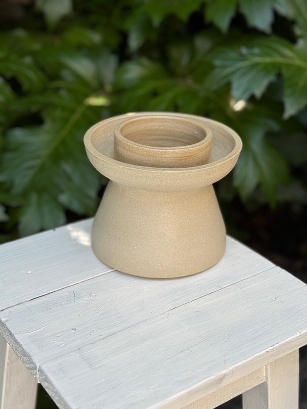 Hecha a mano íntegramente en grés porcelanico color tostado, súper resistente.